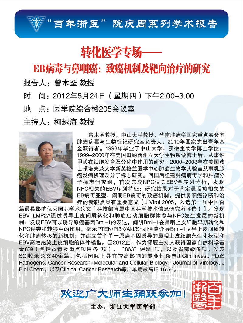 “百年浙医”院庆周系列学术报告——转化医学专场(曾木圣教授学术报告)