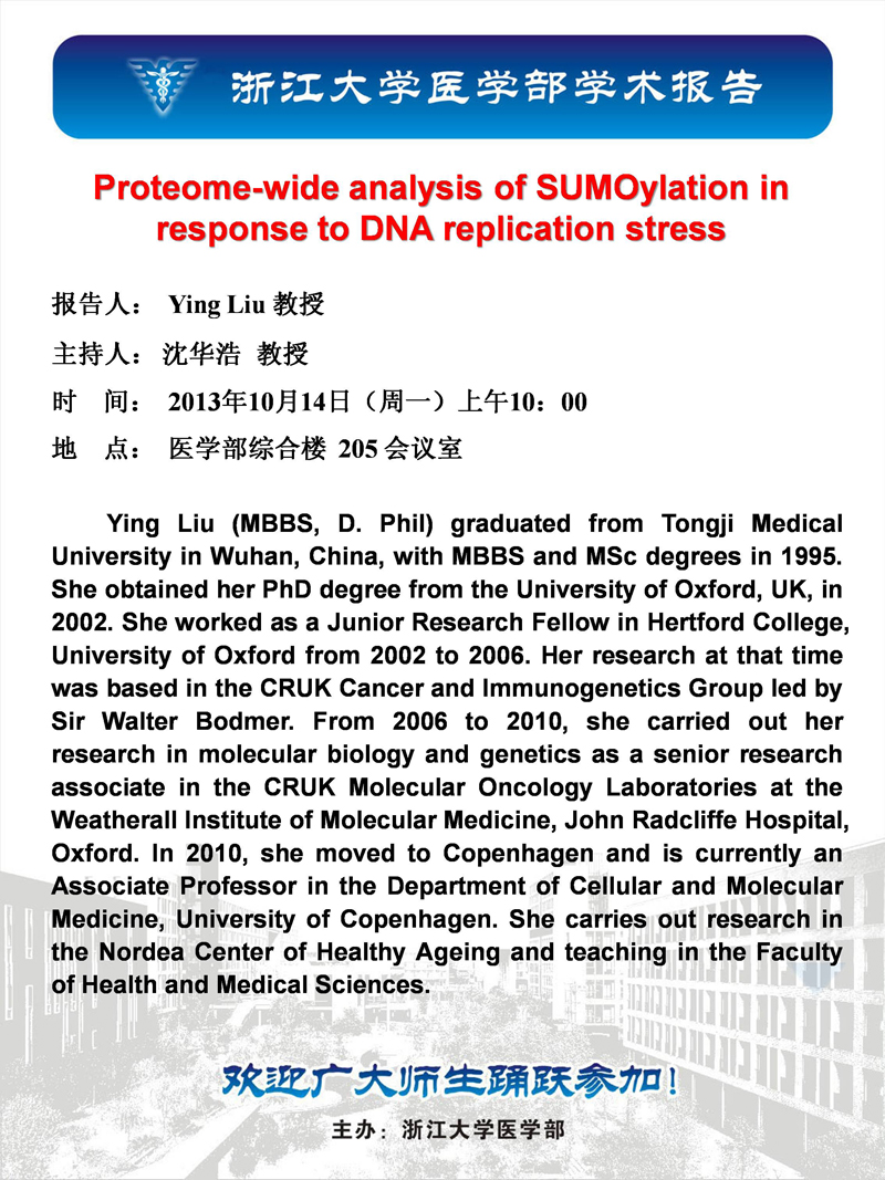 医学部系列学术报告第六十场——Ying Liu教授学术报告