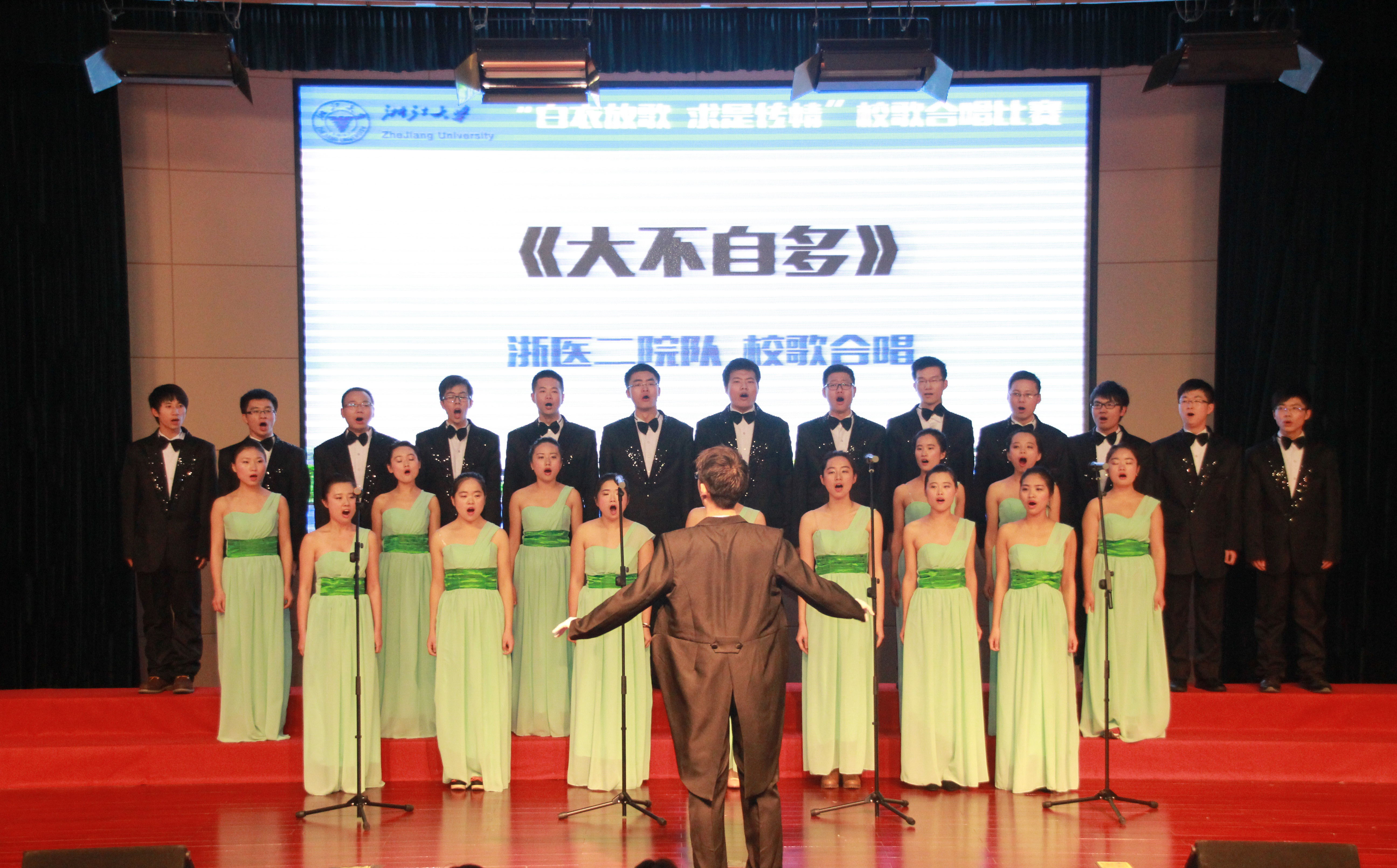 公共卫生系队是第一个出场的队伍,当他们唱出校歌第一句“大不自多,海纳江河”的时候, 立即吸引了全场所有人的目光,从他们歌声里所透露出奋发向上的精神触动了在场所有的人,而委婉动听的自选曲目《青春舞曲》加上美丽的舞蹈,更是让人惊叹;第二个出场的队伍是浙医一院队,雄壮的校歌后是活泼向上的《阳光路上》,让大家坚信医学之路这充满阳光;妇儿口腔医院联队不仅将校歌演绎的动人心弦,一首《爱因为在心中》更是唱出了医者的大爱;浙医二院队第四个出场,高亢嘹亮的校歌搭配温婉绵长的《光阴的故事》,让大家在回忆往昔中思绪翩翩,多样的队形变换也让人惊喜连连;邵逸夫医院队为大家演绎了校歌与《仰望星空》,挥舞的星星,纸飞机优美的弧线,给大家留下了深刻的印象;基础医学系作为去年的冠军,通过开场一段耳目一新的影子戏,给大家讲述了基础医学系的过去、现在,更憧憬了美好的未来,随后的校歌和《歌唱祖国》,不禁让人感叹,基础医学系果然不同凡响;最后压轴的是我们医学院的新成员——转化医学研究院队,虽然是第一次参加比赛,但是选手们毫不怯场,一首《明天会更好》,振奋人心的口号和团结协作的气势让我们坚信,转化医学研究院的明天一定会更好!