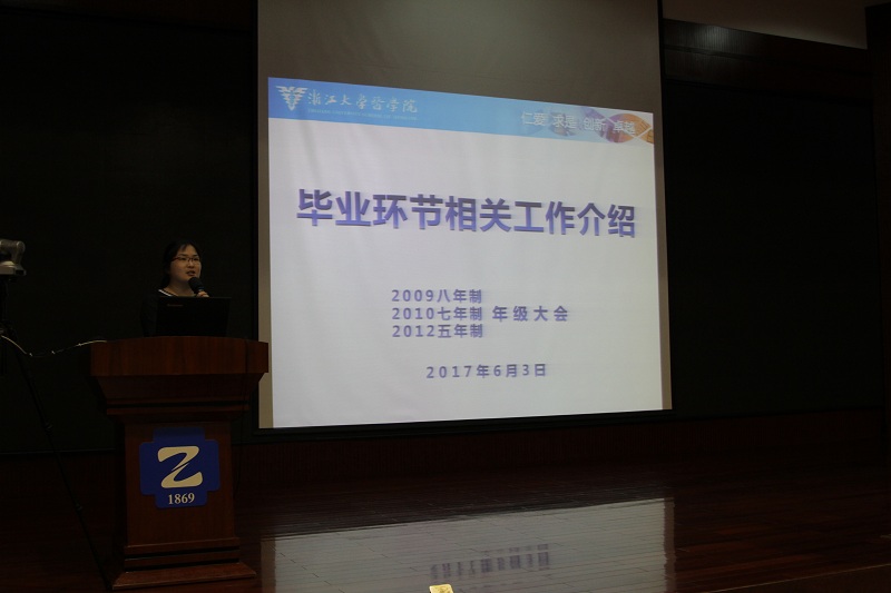 2017年6月3日上午,2009级八年制、2010级七年制、2012级五年制即将毕业的医学生们齐聚在浙医二院报告厅召开了年级大会。原浙江医科大学校长郑树教授、医学院党委副书记陈周闻、党政办主任任桑桑、学工办主任王黎芳、团委书记陈超、团委副书记杜悦出席会议,大会由团委副书记陈辰星主持。临行细细语,望君为良医,在毕业离校前的最后一堂课上,对即将踏上新征途的毕业生们,郑树老校长、学院领导和老师将殷切期望融在一声声的叮咛和嘱咐中。