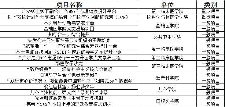 “杏林思行”计划研究生思想政治工作质量提升工程立项结果